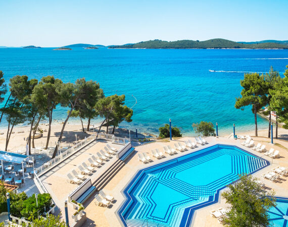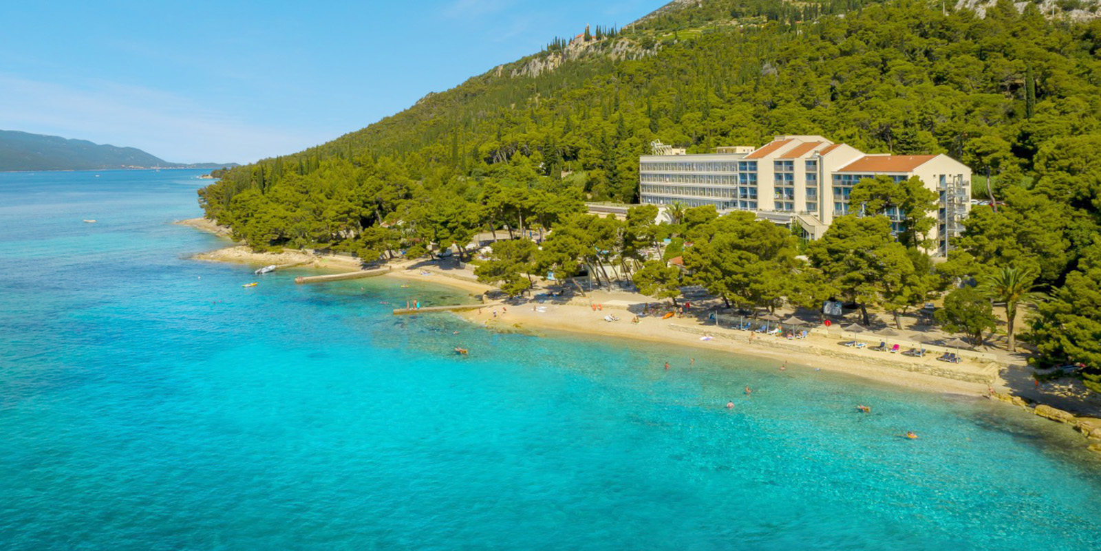Das Aminess Grand Azur Hotel liegt in einer idyllischen Lage in Orebić auf der Halbinsel Pelješac in Kroatien. Das Hotel befindet sich direkt an einem schönen Kiesstrand, umgeben von einem Pinienwald und mit Blick auf die Adria. Es liegt etwa 1,4 km vom Zentrum von Orebić entfernt, wo sich Restaurants, Geschäfte und der Fährhafen befinden. Die Umgebung bietet zahlreiche Möglichkeiten für Aktivitäten wie Wandern, Radfahren und Wassersport. Der 961 Meter hohe Berg Sveti Ilija in der Nähe ist ein beliebtes Ziel für Wanderer. Von Orebić aus können Gäste leicht Ausflüge zu den umliegenden Inseln unternehmen oder die historische Stadt Dubrovnik besuchen, die etwa 113 km entfernt liegt. Die Region ist bekannt für ihre malerische Küste, Weinberge und reiche Kultur. Der nächstgelegene Flughafen ist der internationale Flughafen Dubrovnik, der sich in etwa 131 km Entfernung befindet.