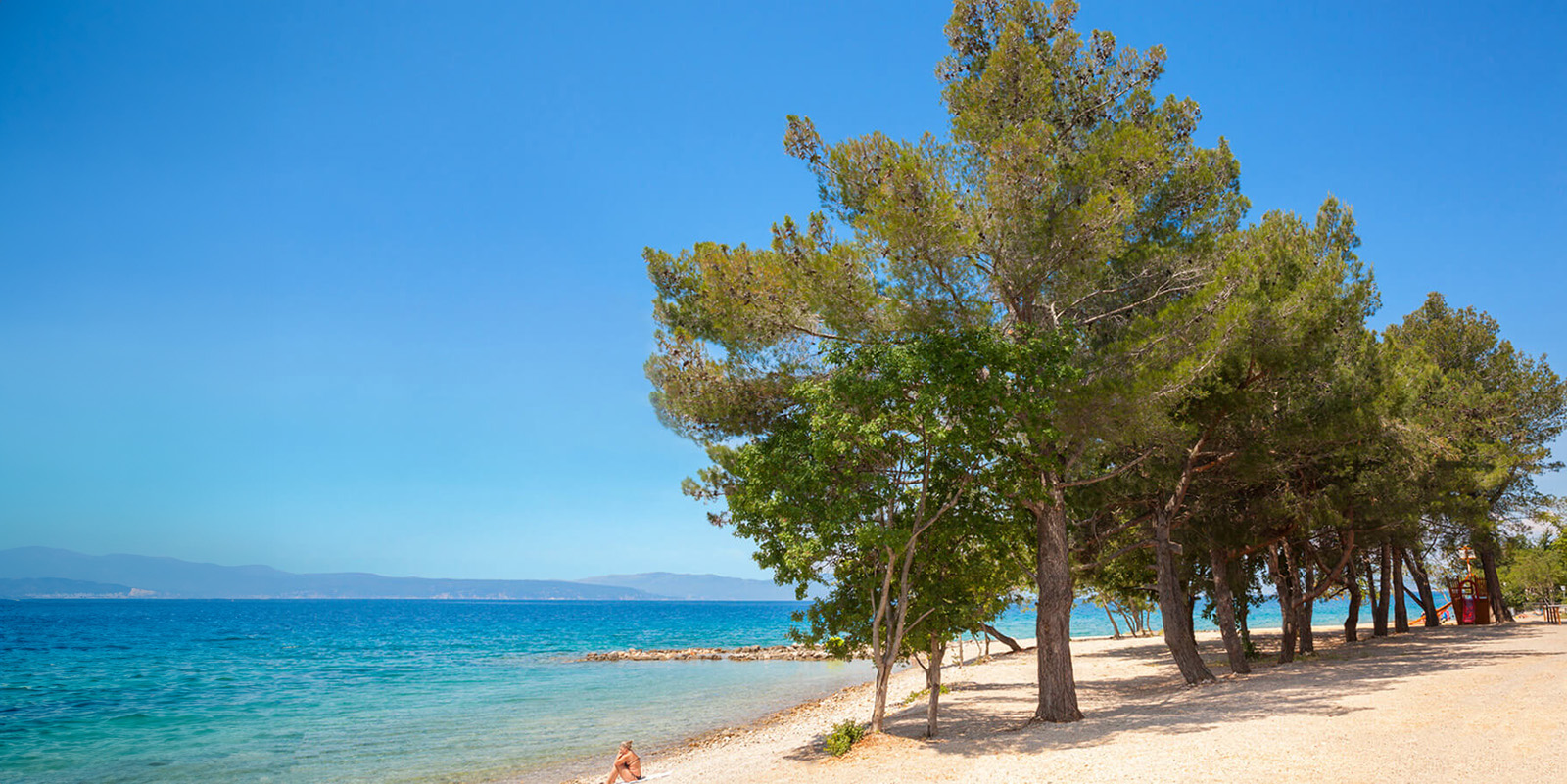 Lage in einem Pinienwald, etwa 150 m vom Kiesstrand entfernt